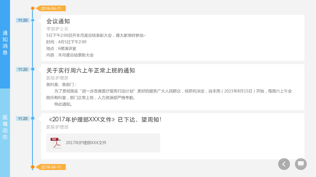 護理部統(tǒng)一發(fā)送正式通知消息或者科室內(nèi)消息互通