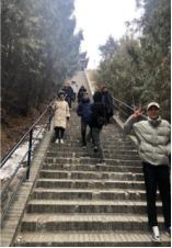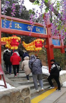 第二天早上9:00點,我們團(tuán)體到達(dá)紅螺寺景區(qū),位于北京市懷柔區(qū)城北5公里的紅螺山南麓,距北京市區(qū)55公里,景區(qū)總面積800公頃,國家AAAA級旅游區(qū)。始建于東晉咸康四年(公元338)年,原名“大明寺”(明正統(tǒng)年間易名“護(hù)國資福禪寺”,因紅螺仙女的美妙的傳說,俗稱“紅螺寺”)。紅螺寺坐北朝南,依山勢而建,布局嚴(yán)謹(jǐn),氣勢雄偉。現(xiàn)在時節(jié)三九,北方冰天雪地,此時攀登由緩緩的山勢而上,身體慢慢散發(fā)熱量,爬到山頂已經(jīng)是大汗淋漓,站在頂端俯視村莊,遠(yuǎn)眺雁西湖畔、懷柔水庫,高矮錯落的房子......心境舒爽。