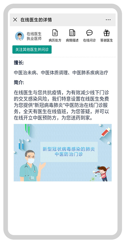 在線診療服務(wù)旨在通過在線診療平臺免費賦能就醫(yī)體驗,讓患者在家安心隔離,避免患者對病情不清楚隨意前往醫(yī)院造成不必要的聚集性感染,從而降低感染風(fēng)險。合理利用醫(yī)療資源,進一步讓醫(yī)療衛(wèi)生行業(yè)和廣大人民群眾都共享智慧醫(yī)療創(chuàng)新中心帶來的高效便利診療服務(wù),保障廣大患者及公眾的生命安全和身體健康。